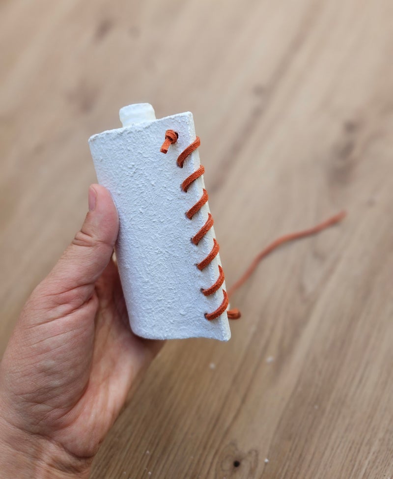 te zetten, gaf ik het een tweede leven in Japandi-stijl. Met een laag klei, een subtiel stiksel en wat droogbloemen toverde ik het om tot een minimalistische vaas die perfect past in een rustig interieur.